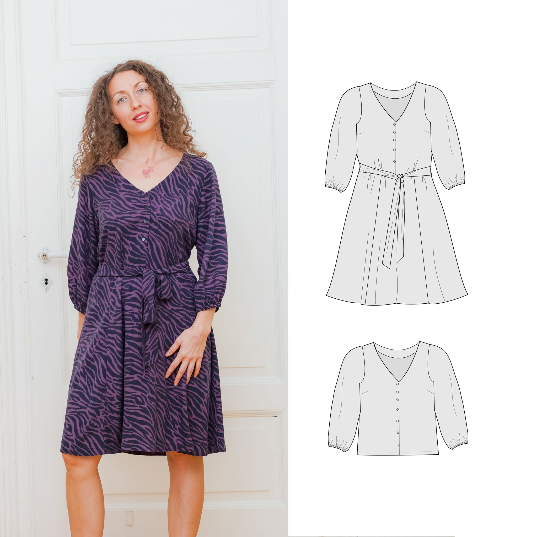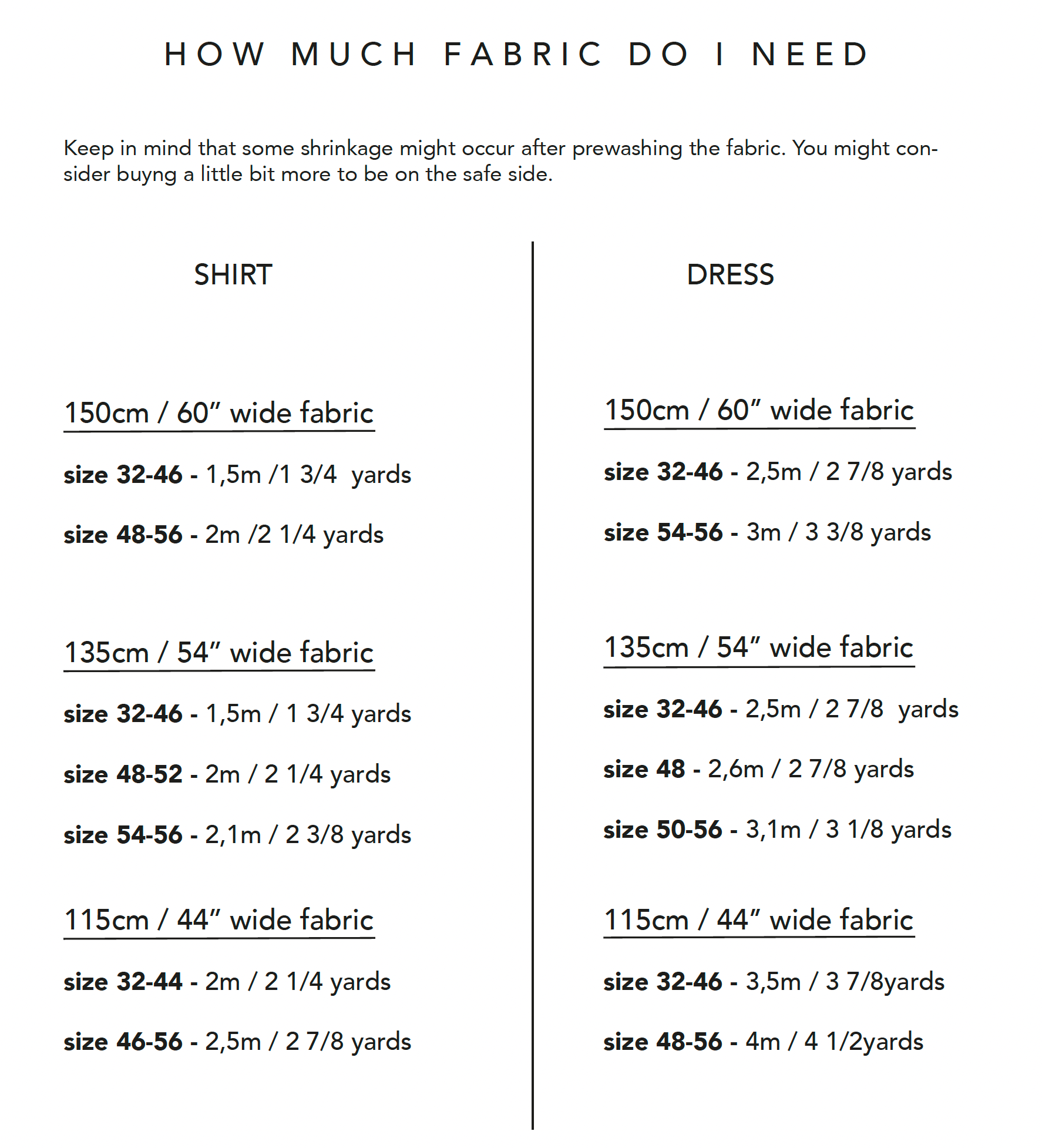 For the dress, use viscose, rayon, Tencel, crepe, georgette, or cotton lawn. For the shirt, you can choose even stiffer fabrics.